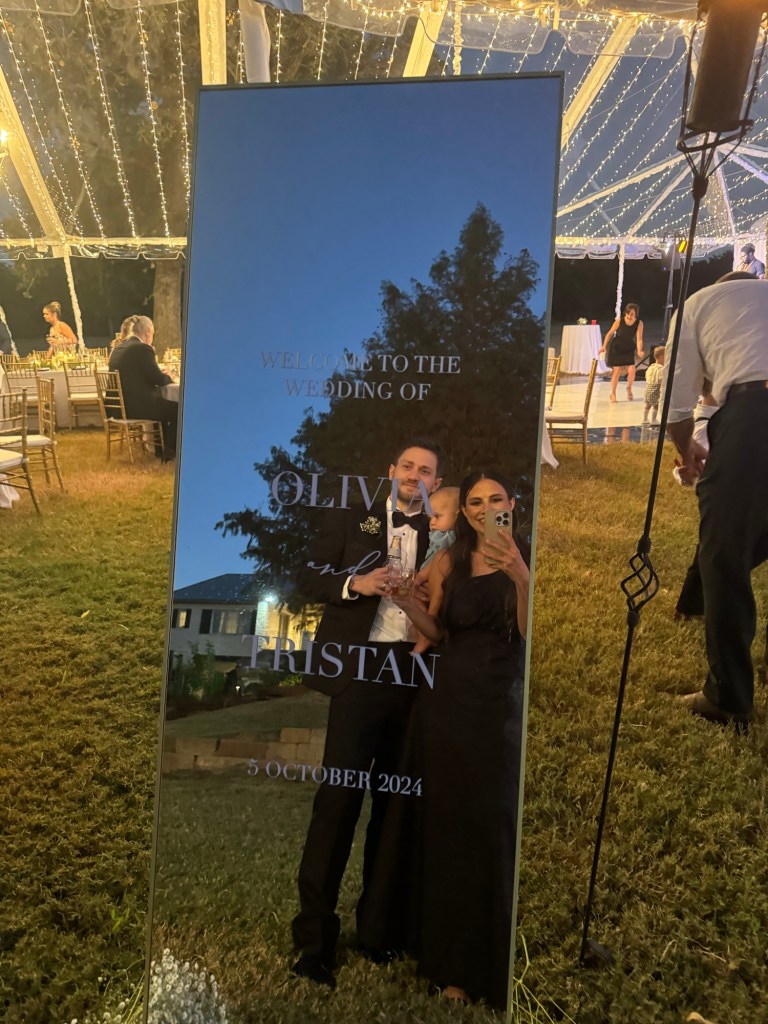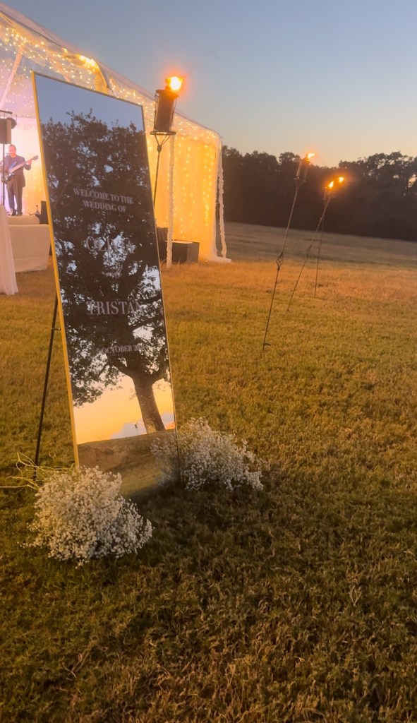 I definitely recommend being a little crafty and creating this super cute wedding selfie mirror. This is the combination of a welcome sign and picture opportunity all rolled into one! I created this for my sister-in-law for her big day!