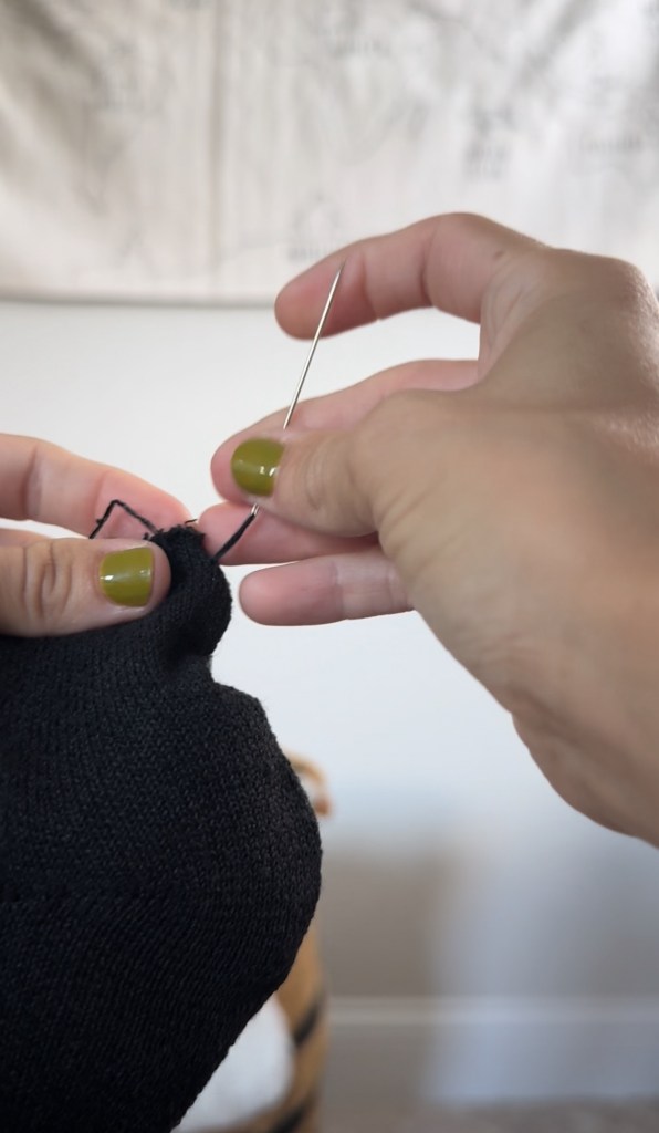 I closed that together with some black embroidery thread and a needle but again you could probably use anything. You could probably hot glue it if you wanted to.