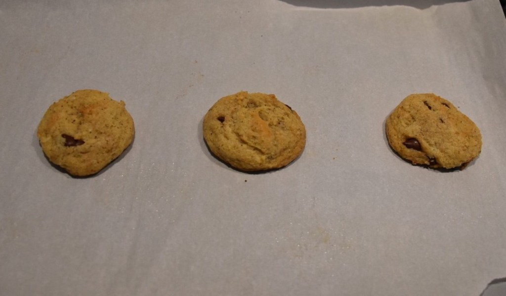 Preheat the oven to 350°F and line a baking sheet with parchment paper or silicone mat. Using a cookie scoop, take about 2 tbsp (I like mine slightly smaller and used a 1.5 tablespoon-sized) portions of the dough onto the prepared baking sheet about 2 in apart. Feel free to make these as small or large as you would like. If you are a chocolate lover you can add extra chocolate chips to the top of the dough.