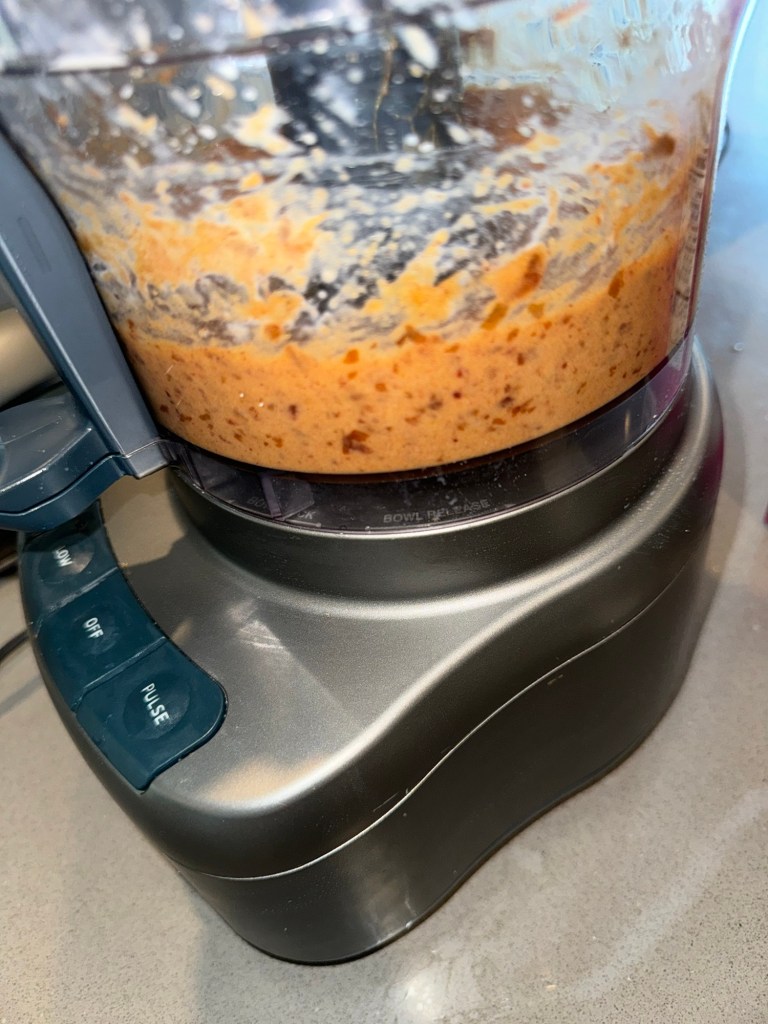 In a food processor, blend 1 cup softened Medjool dates, 2 tablespoons peanut butter (really any nut or seed butter will work), 1-2 tablespoons of milk (I used whole milk because I had it on hand but any plant milk or even water would work), 1/2 teaspoon vanilla extract, and a pinch of salt. Blend until very smooth and creamy, scraping down sides as needed.