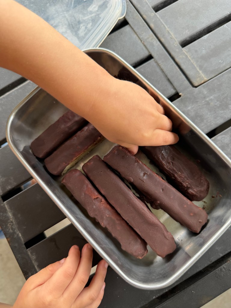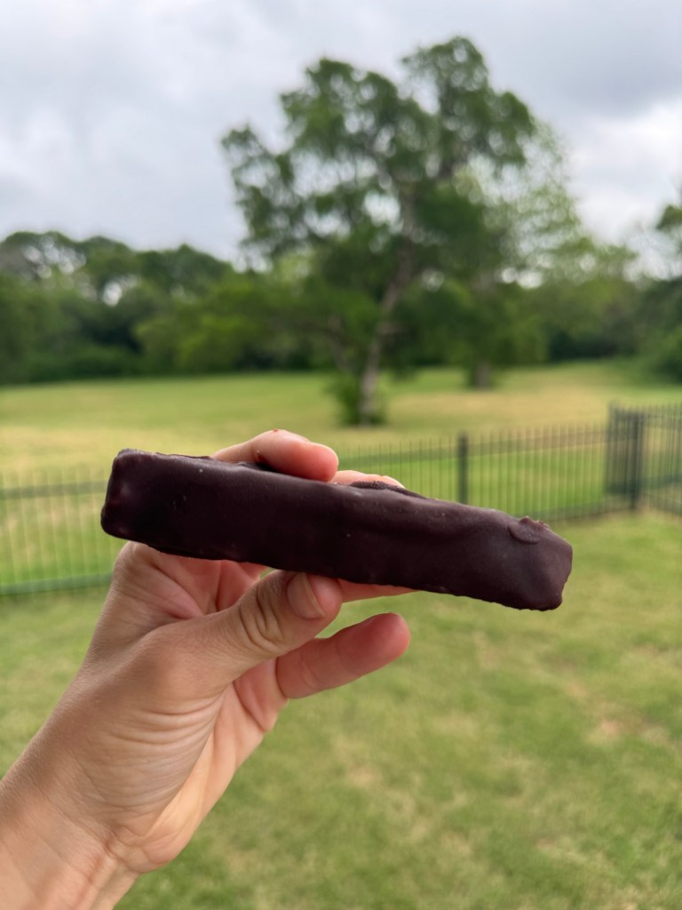 - Mix chocolate topping, dip bars, chill again.