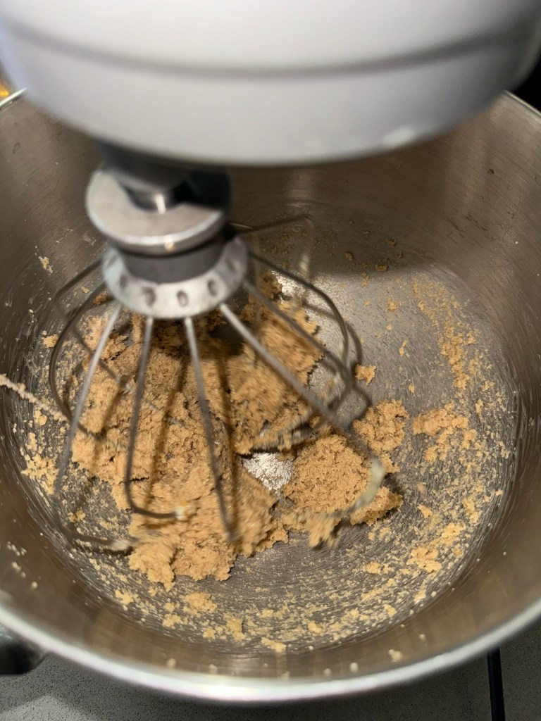 - Cream butter, brown sugar, and granulated sugar until light and fluffy.