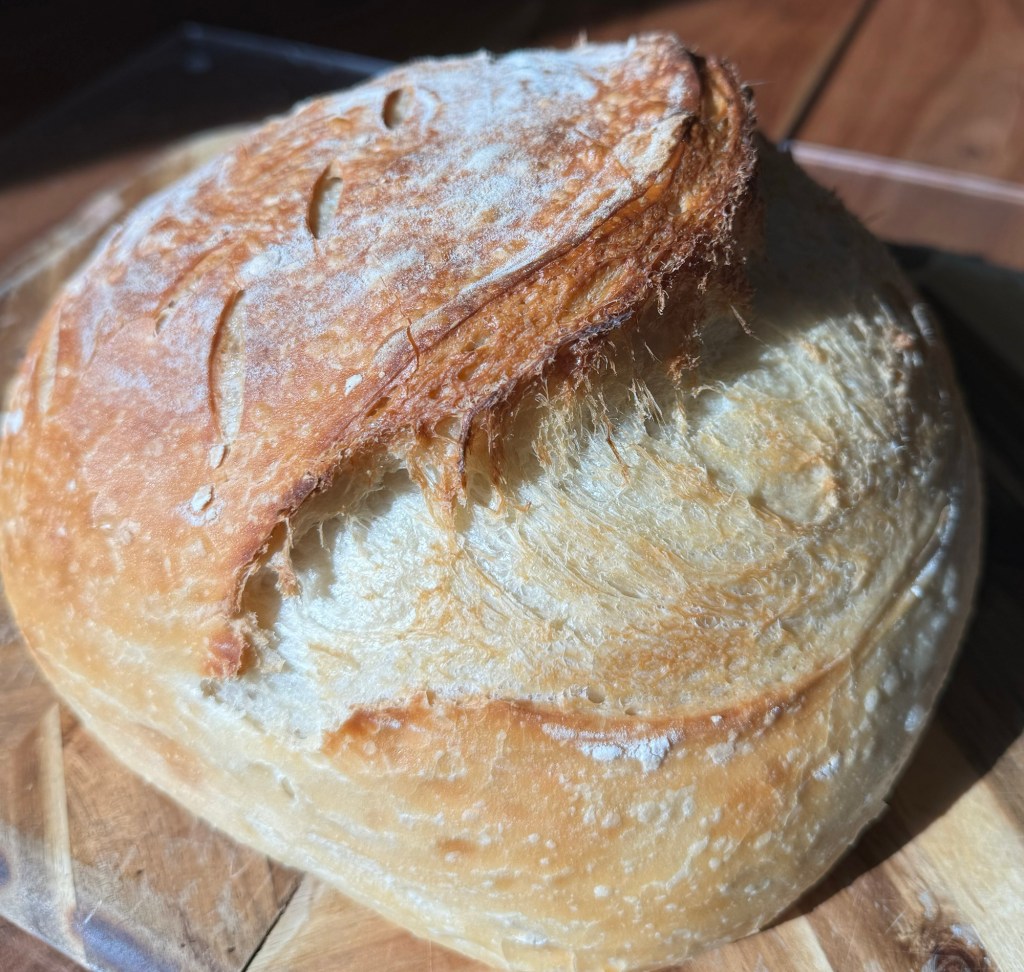 If sourdough has ever felt intimidating, this post is for you. I’ve been wanting to share this recipe for a while, through a little trial and error I think I’ve perfected this one! Prior to starting sourdough I never considered myself a baker. It felt way too exact for me, I’m definitely more type B in the kitchen. I’ve learned sourdough can actually be very forgiving and does not need to be this exact science. You can work with your schedule and I’ll show you the method I use in my own kitchen to make a classic artisan sourdough loaf. It’s crispy on the outside, with a soft and chewy center. There’s no scale (though if using a scale is your thing, I’ll include measurements), no complicated math, and no pressure to be perfect.