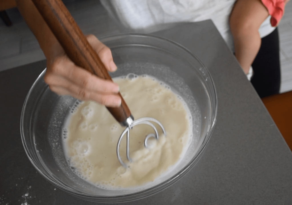 Discard ¼ cup of starter (up to ½ cup if you have a large amount). Discard can be saved in a sealed jar in the fridge for 1–2 weeks for crackers, pancakes, English muffins, etc. Feed your starter: ¼ cup lukewarm filtered water (can be either room temperature water or warmed for in the microwave for about 10 seconds) and ½ cup of all purpose flour. Mix well.
